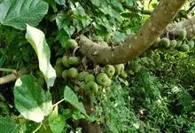 大果榕是桑科榕属的小乔木,株高可达10米;幼枝被柔毛;叶互生,宽卵状心形或近圆形;雄花无梗、匙形、花丝长,雌花生于雌株榕果内,子房白色;榕果簇生于树干基部或老茎短枝上、扁球形或陀螺形,…全部>>