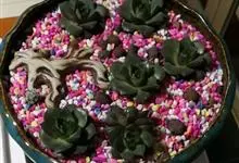 大和锦是景天科拟石莲花属的多肉植物。肉质叶排成紧密的莲座状,广卵形至散三角卵形,背面突起呈龙骨状,叶长3至4厘米,宽约3厘米,先端急尖。叶色灰绿,密布红褐色的斑纹。花序高约30cm。小花红色,上部黄色。…全部>>