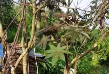 蓖麻是大戟科蓖麻属一年生粗壮草本或草质灌木。小枝、叶通常被白霜,茎直立,无毛,多液汁,绿色或稍带紫色,被白粉;叶轮廓近圆形,边缘具锯齿,叶柄粗壮,中空;蒴果卵球形或近球形,果皮具软刺或平滑;种子椭圆形,…全部>>