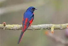 蓝喉拟啄木鸟,是须鴷科、拟啄木鸟属的鸟类。蓝喉拟啄木鸟为小型鸟类,体长20-23厘米。前额至头顶鲜红色,其上有一宽阔的黑色横带,将此红色分为前后二块;头侧、颏、喉蓝色,下喉两侧各具一红色点斑。…全部>>