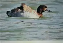 斑背潜鸭体长42-47厘米,翼展68-75厘米,体重750-1350克,是中等的体矮型鸭。雄鸟体比凤头潜鸭长,背灰,无羽冠。雌鸟与雌凤头潜鸭区别在于嘴基有一宽白色环。…全部>>