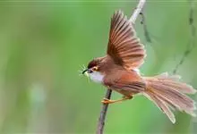 棕头雀鹛为鸦雀科,褐鹛属小型鸟类,体长10-13厘米。头顶栗褐色具黑色侧冠纹。上体茶黄色,飞羽外侧表面灰白色,内侧表面红棕色,内外二色之间夹有黑色。颏、喉白色具不明显的暗色纵纹,胸沾葡萄灰色,…全部>>