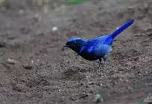 蓝大翅鸲是鹟科、大翅鸲属小型鸟类,体长19-21厘米。两翅尖长。雄鸟通体鲜紫蓝色具金属光泽。两翅和尾黑色。雌鸟上体灰褐色,头、颈、翕具棕白色纵纹,翅上有白色翅斑。虹膜暗褐色,嘴、脚黑色。…全部>>
