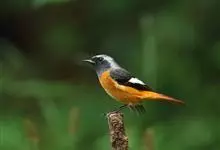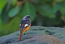 北红尾鸲是雀形目鸫亚科红尾鸲属的一种鸟类。北红尾鸲体长13—15厘米。雄鸟头顶至背石板灰色,下背和两翅黑色,具明显的白色翅斑;腰、尾上覆羽和尾橙棕色;前额基部、头侧、颈侧、颏喉和上胸黑色,…全部>>