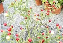 珊瑚樱是茄科茄属植物。株高达2米;植株无毛;叶窄长圆形或披针形,长1-6厘米,基部窄楔形下延,全缘或波状,侧脉4-7对;叶柄长2-5毫米;花单生,稀双生或成短总状花序与叶对生或腋外生,…全部>>