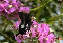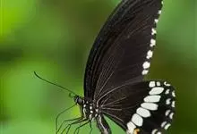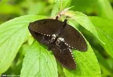 玉斑凤蝶Papilio helenus 别名白纹凤蝶,是凤蝶科凤蝶属美凤蝶亚属大型种类。雌雄同型;体翅皆黑色,后翅正面中室外有3个并列的白色斑,亚外缘有1列模糊的新月形红色斑,…全部>>