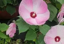 芙蓉葵是锦葵科木槿属植物,又名草芙蓉、大花秋葵,原产于北美。落叶灌木状。叶大、广卵形,叶柄、叶背密生灰色星状毛。花大,单生于叶腋,有白、粉、红、紫等色。喜阳、略耐阴,宜温暖湿润气候,忌干旱,耐水湿,…全部>>