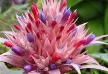 美叶光萼荷是凤梨科光萼荷属的多年生附生常绿草本植物。叶基生,莲座状叶丛基部围成筒状,叶呈绿色条形至剑形,被灰色鳞片;花葶直立,花序穗状,密集成阔圆锥状球形花头,苞片呈淡玫瑰红色革质,先端尖,小花无柄,…全部>>