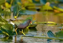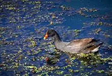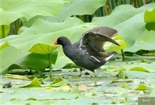 黑水鸡:是鹤形目、秧鸡科的鸟类,共有12个亚种。中型涉禽,体长24-35厘米。嘴长度适中,鼻孔狭长;头具额甲,后缘圆钝;嘴和额甲色彩鲜艳。翅圆形,第2枚初级飞羽最长,或第2枚和第3枚初级飞羽等长,…全部>>
