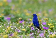 蓝大翅鸲是鹟科、大翅鸲属小型鸟类,体长19-21厘米。两翅尖长。雄鸟通体鲜紫蓝色具金属光泽。两翅和尾黑色。雌鸟上体灰褐色,头、颈、翕具棕白色纵纹,翅上有白色翅斑。虹膜暗褐色,嘴、脚黑色。…全部>>