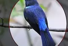 大仙鹟:体重34-38克,体长20-2厘米。是一种体型较大的深色鹟。雄鸟上体蓝色,头顶、颈侧条纹、肩块及腰部辉蓝,下体黑色。雌鸟橄榄褐色,头顶蓝灰,颈侧具闪辉浅蓝色块,喉具皮黄色三角形块斑。…全部>>