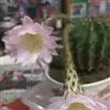 仙人球花 仙人掌科,仙人球属。植株单生或成丛。幼株球形,老株长成圆筒状,高可达75厘米,直径12-15厘米。球体暗绿色,具棱11-12。刺锥状,黑色,长1-1.5厘米。花着生于球体侧方,大型嗽喇叭状…全部>>