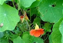旱金莲是旱金莲科旱金莲属蔓生一年生草本植物。叶互生,叶柄向上扭曲,盾状,叶圆形,具波状浅缺刻,下面疏被毛或有乳点;花黄、紫、桔红或杂色,花托杯状,花瓣为圆形,边缘具缺刻;果实为扁球形;花果期6-10月,…全部>>