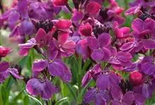 紫罗兰 W.T.Aiton)是十字花科紫罗兰属植物。二年生或多年生草本。植株高60厘米,布满灰白色的分枝柔毛;茎直立,多分枝,基部稍木质化;叶片为长圆形、倒披针形或匙形;总状花序顶生和腋生;花多数,…全部>>