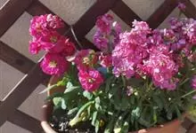 紫罗兰 W.T.Aiton)是十字花科紫罗兰属植物。二年生或多年生草本。植株高60厘米,布满灰白色的分枝柔毛;茎直立,多分枝,基部稍木质化;叶片为长圆形、倒披针形或匙形;总状花序顶生和腋生;花多数,…全部>>