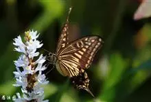 玉斑凤蝶Papilio helenus 别名白纹凤蝶,是凤蝶科凤蝶属美凤蝶亚属大型种类。雌雄同型;体翅皆黑色,后翅正面中室外有3个并列的白色斑,亚外缘有1列模糊的新月形红色斑,…全部>>