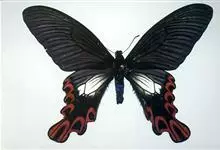 宽尾凤蝶是凤蝶科、宽尾凤蝶属昆虫。翅展115-130毫米。体、翅黑色,翅面散生黄色鳞片;前翅前缘色深,后翅外缘波状,波谷红色,。雄性外生殖器上钩突窄小,骨化。雌性外生殖器产卵瓣较长;交配孔宽大,…全部>>