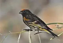 金额丝雀:为雀科丝雀属的鸟类。体重10-14克,体长109-131毫米。是一种体型较小的褐色斑驳的雀鸟。头近黑,额至顶冠有鲜红色块斑。雄雌同色,体羽在繁殖期更为亮丽。幼鸟似成鸟但头色较淡,…全部>>