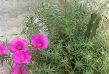 大花马齿苋:一年生草本,高10-30厘米。茎平卧或斜升,紫红色,多分枝,节上丛生毛。叶密集枝端,较下的叶不规则互生,叶片细圆柱形,无毛。花单生或数朵簇生枝端,直径2.5-4厘米,…全部>>