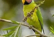 紫红头鹦鹉是鹦形目鹦鹉科的鸟类。鸟体为绿色,头部中间为红色,下颏下方延伸到脸颊下方,环绕整个颈部有一条黑色的环状羽毛,并连接一条蓝绿色的条状羽毛。…全部>>