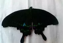 玉斑凤蝶Papilio helenus 别名白纹凤蝶,是凤蝶科凤蝶属美凤蝶亚属大型种类。雌雄同型;体翅皆黑色,后翅正面中室外有3个并列的白色斑,亚外缘有1列模糊的新月形红色斑,…全部>>