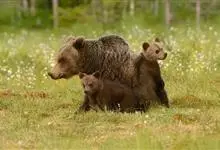 棕熊是熊科熊属哺乳动物。体形健硕,肩背隆起,身后长有一条短尾。毛色多为棕褐色或棕黄色;老年呈银灰色;幼年为棕黑色。野生条件下寿命为20—30年。棕熊分布广泛,主要分布在欧亚大陆和北美,…全部>>