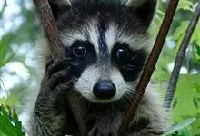 浣熊:食肉目、浣熊科的一种哺乳动物,成年体长40-65厘米,尾长20-40厘米,体重4-10千克,雄性稍大于雌性。体型较小。面部有黑色眼斑,形象滑稽,绰号“蒙面大盗”;尾部有5到7条黑白相间的环纹。…全部>>