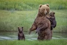 棕熊是熊科熊属哺乳动物。体形健硕,肩背隆起,身后长有一条短尾。毛色多为棕褐色或棕黄色;老年呈银灰色;幼年为棕黑色。野生条件下寿命为20—30年。棕熊分布广泛,主要分布在欧亚大陆和北美,…全部>>