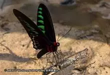 亚历山大女皇鸟翼凤蝶,又称大鸟翼蝶,是鳞翅目凤蝶科鸟翼蝶属蝴蝶;翅膀圆阔、褐色,雌性翅膀上会点缀着耀眼的白色斑纹;雄性翅膀上则闪耀着红蓝色的光泽。亚历山大女皇鸟翼凤蝶幼时很黑,身上长有红色的结节,…全部>>