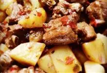 新疆大盘鸡又名为沙湾大盘鸡,是新疆名菜,起源于20世纪80年代,主要用料为鸡块和土豆块、四川粉皮,配皮带面烹饪而成。 色彩鲜艳、爽滑麻辣的鸡肉和软糯甜润的土豆,辣中有香、粗中带细,是餐桌上的佳品。全部>>
