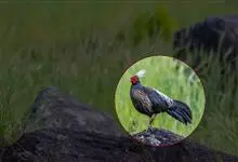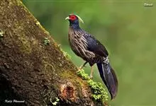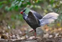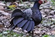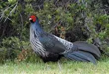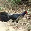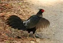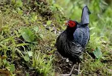 黑鹇是鸡形目雉科目鹇属鸟类,又称鸬雉、黑鸡。体型中等。雄鸟上体黑褐色,背羽具黑紫色金属光泽;头顶具黑羽冠;脸部裸皮呈红色,散生稀疏黑色纤羽;尾长而侧扁,中央两对尾羽红褐色,…全部>>