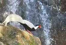 白鹇,是鸡形目雉科鹇属的一种留鸟。雄鸟上体白色并具黑色纹,下体黑色,头顶具黑色长羽冠,尾白而长;雌鸟体型较小,以橄榄褐色为主,下体具白色或皮黄色细纹;虹膜褐色,眼周具红色裸皮,喙黄色,脚鲜红色。…全部>>