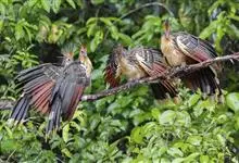 麝雉,又名爪羽鸡,属于鹃形目麝雉科麝雉属的鸟类动物。麝雉的大小和普通的雉鸡差不多,体长65厘米左右,体重通常不超过1千克;身体大部分呈褐色,下身颜色较淡;面部没有羽毛,…全部>>