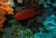 大眼鲷是鲈形目大眼鲷科鱼类,又称大目、大目莲。体呈长椭圆形,较侧扁;口大,口裂倾斜或近垂直状;眼更大,直径约占头长的1/2;上颌骨宽,两颌、犁骨及腭骨均具绒毛状牙;前鳃盖骨边缘具细锯齿,隅角处有强棘。…全部>>