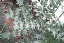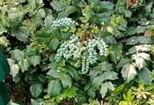 十大功劳 Fedde),小檗科十大功劳属常绿灌木植物。叶子较大且较多,呈椭圆形,绿色,表面光滑无毛,叶柄较长;花朵较小,呈多边形,黄色,花瓣对称分布,表面有绒毛;果实呈圆形,褐色,…全部>>