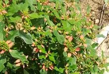 猩猩草:常绿或半常绿灌木,盆栽时株高0.5米-2米,在亚热带地区可长到6米以上。茎直立而光滑,单叶互生,卵状椭圆形至阔披针形,具不规则的深缺刻。长10-15厘米。花小,有蜜腺,排列成密集的伞房花序。…全部>>