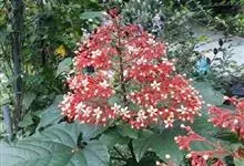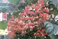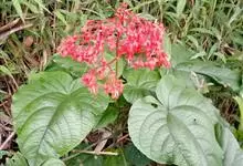 赪桐 Sweet)是唇形科、大青属灌木,高1-4米,叶片圆心形,顶端尖或渐尖,基部心形,边缘有疏短尖齿,表面疏生伏毛,二歧聚伞花序组成顶生,大而开展的圆锥花序,花序的最后侧枝呈总状花序,花萼红色,…全部>>