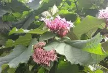 臭牡丹,唇形科大青属灌木,植株有臭味;花序轴、叶柄密被褐色、黄褐色或紫色脱落性的柔毛;小枝近圆形,皮孔显著;叶片纸质,宽卵形或卵形;伞房状聚伞花序顶生,密集;花冠淡红色、红色或紫红色;核果近球形,…全部>>