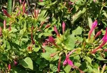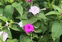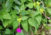 即紫茉莉,英文名:Four-o'clock,Marvel of Peru,为紫茉莉科、紫茉莉属多年生草本植物,一年生栽培。株高50~80cm。根粗壮,茎多分枝而散生。叶对生,卵形或心脏形。花数朵簇生…全部>>