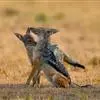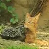 亚洲胡狼是金豺的指名亚种,体型中等、匀称,四肢修长,趾行性,利于快速奔跑。头腭尖形,颜面部长,鼻端突出,耳尖且直立,嗅觉灵敏,听觉发达。犬齿及裂齿发达;上臼齿具明显齿尖,…全部>>