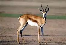 阿拉伯沙瞪羚:是偶蹄目、牛科、瞪羚属的食草动物。头尾长97厘米,身高约55-60厘米。雄性体重约为22千克,雌性性体重为18千克。雌雄都有犄角,雄性长达27厘米,雌性15厘米。体型较小。腿细长,…全部>>