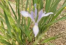 扁竹兰是鸢尾科鸢尾属植物,多年生草本。根状茎横走,直径4-7毫米,黄褐色,节明显,节间较长;须根多分枝,黄褐色或浅黄色。地上茎直立。叶10余枚,密集于茎顶,基部鞘状,互相嵌迭,排列成扇状,叶片宽剑形,…全部>>