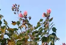 木芙蓉,锦葵科木槿属落叶灌木或小乔木。小枝上有细绒毛;叶片为卵状心形,托叶为披针形,常早落;花单生,花萼为钟形,花冠初为白色或淡红色,后逐渐变为深红色;果实为扁球形,有淡黄色的毛附着。花期8到10月。…全部>>