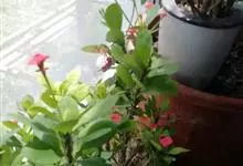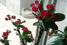 铁海棠为大戟科大戟属蔓生灌木植物;茎多分枝,具纵棱,呈旋转状;叶互生,通常集中于嫩枝上;每个花序基部边缘具微小的红色尖头;苞叶先端圆且具小尖头,无柄,上面鲜红色,下面淡红色;苞片丝状;子房光滑无毛,…全部>>
