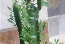 霸王鞭,是大戟科大戟属的多年生肉质灌木,全株含白色乳汁;茎直立,茎基部圆柱形,上部4~5纵棱,边缘波状,外面深绿色;叶互生,上部叶密集,近于簇生,具短柄,其基部有利刺1对;叶片披针形,先端圆,…全部>>