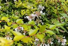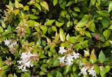 大花六道木,忍冬科六道木属半常绿矮生灌木。其幼枝为红褐色,有短柔毛;叶片倒卵形为墨绿色,有光泽;花粉钟形为白色;圆锥花序,开花繁茂;花期长,5~11月持续开花。…全部>>