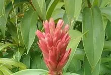 闭鞘姜 S. R. Dutta)是闭鞘姜科闭鞘姜属多年生草本植物,高可达3米。茎基部近木质,顶部常分枝旋卷;叶长圆形或披针形;穗状花序顶生,椭圆形或卵圆形;蒴果稍木质,成熟时红色,…全部>>