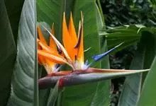 鹤望兰,别名天堂鸟,为鹤望兰科鹤望兰属的一种多年生草本植物;无木质树干;花序生于与叶柄近等长或稍短的花序梗上,佛焰苞1;花较小,萼片橙黄色,长7.5-10厘米,箭头状花瓣基部具耳状裂片,…全部>>