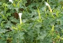 曼陀罗,茄科曼陀罗属一年生大型草本植物,全株光滑。有臭气;叶呈广卯形,边缘具不规则波状浅齿裂;花单生于枝杖间或叶腋,直立,有短梗;花萼是筒状裂片三角形,颜色为白色或淡紫色;果实为蒴果卵状,…全部>>