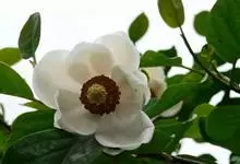 荷花木兰,木兰科北美木兰属常绿灌木或乔木。叶子椭圆形或倒卵形,前端尖,叶面深绿色,边缘没有锯齿,背面分布有稀疏的绒毛;花单生在枝头的前端,很像荷花的形状;花色白色,花丝紫色,…全部>>